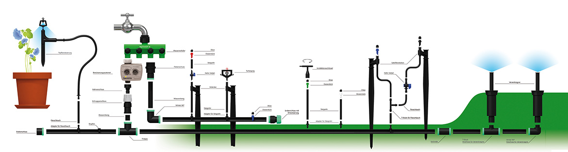 Welches Set oder welche zusätzlichen Einzelteile benötigt werden ist in erster Linie eine „Kulturfrage“. Die optimale Versorgung eines Beetes unterscheidet sich von derer für Topfpflanzen oder gar dem Rasen bewässern.